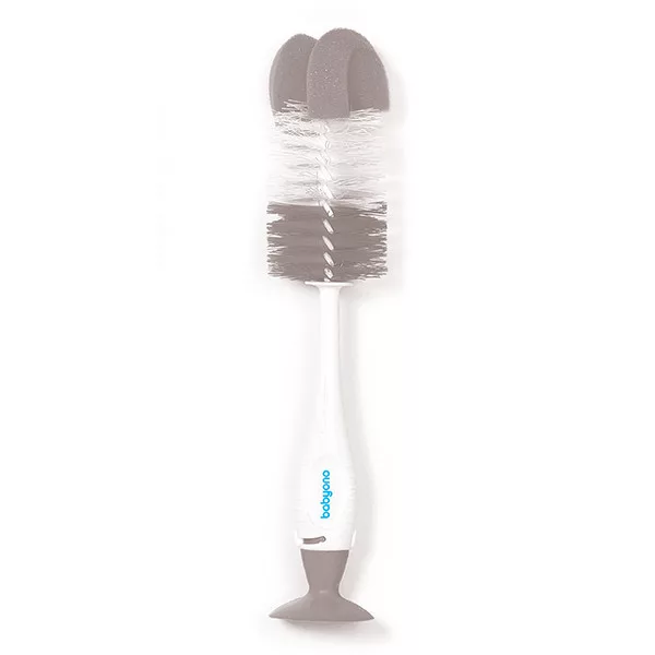 BABYONO Cumisüveg és cumi tisztító kefe 2 az 1-ben tapadókoronggal szürke