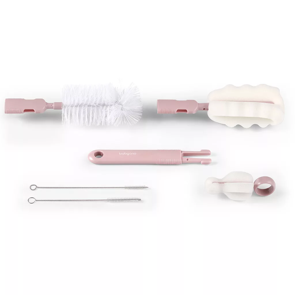 BABYONO Cumisüveg és cumimosó kefe levehető fogantyúval Rózsaszín
