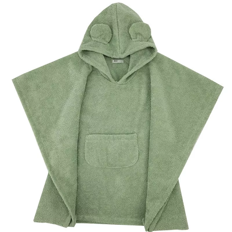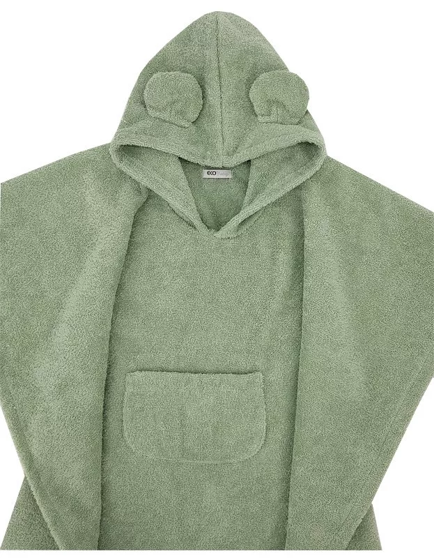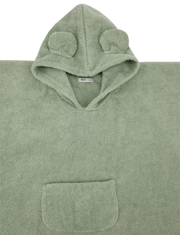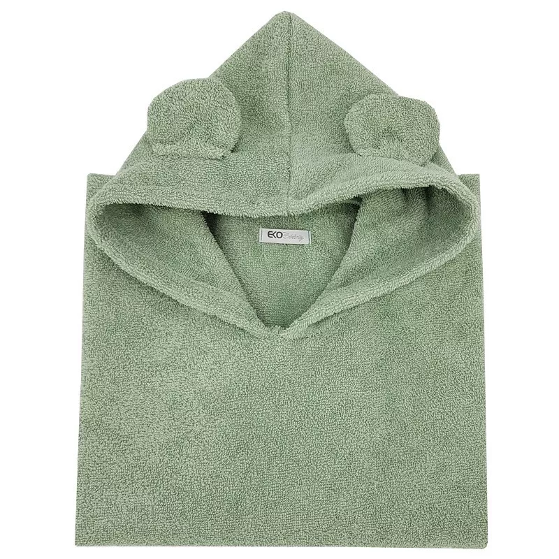EKO Pončo pamutból kapucnival és fülekkel Olive green 75x120 cm