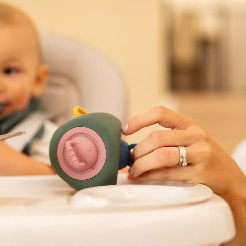PETITE&MARS Szilikon játék Pop Up Triangle Misty Green 10hó+
