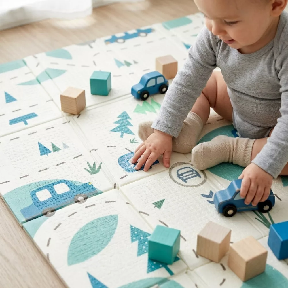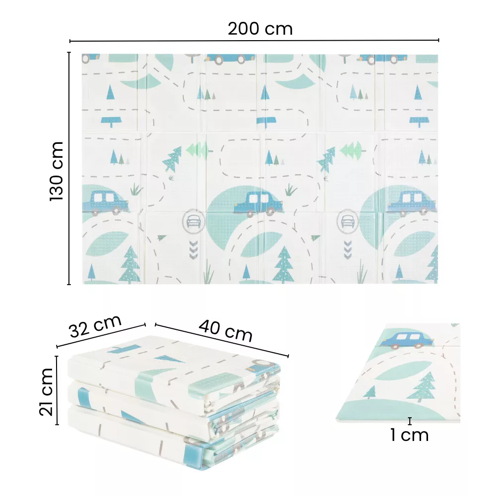 PETITE&MARS Összecsukható játszószőnyeg Campy L 130x200cm Cars&Arabesca