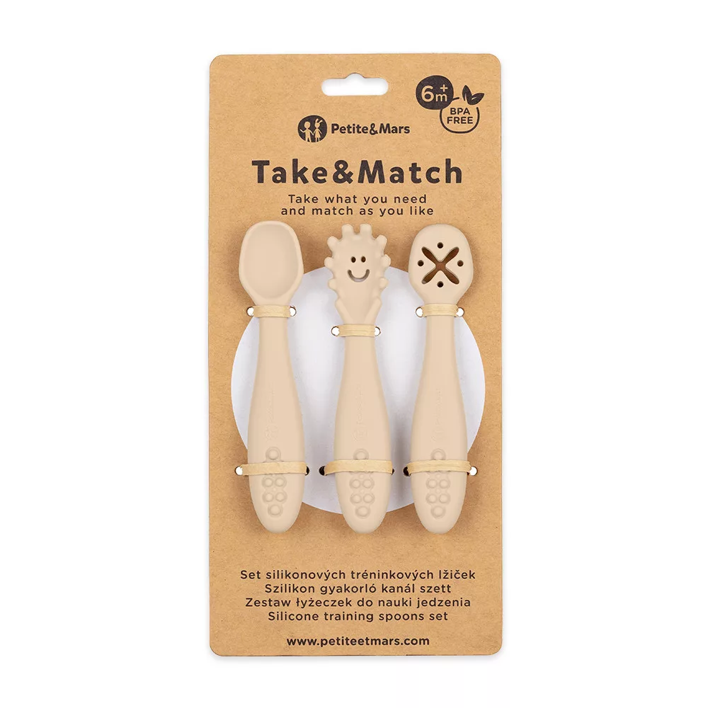 PETITE&MARS Szilikon gyakorló kanál szett 3 db Take&Match Desert Sand 6m+
